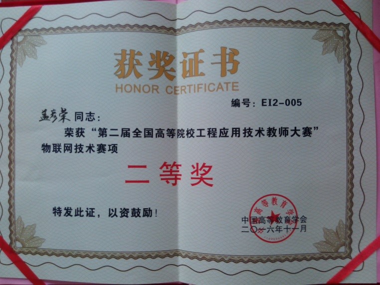教师盖彦荣博士获第二届全国高等院校工程应用技术大赛二等奖