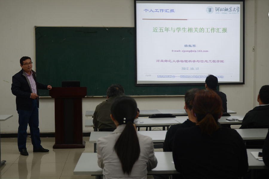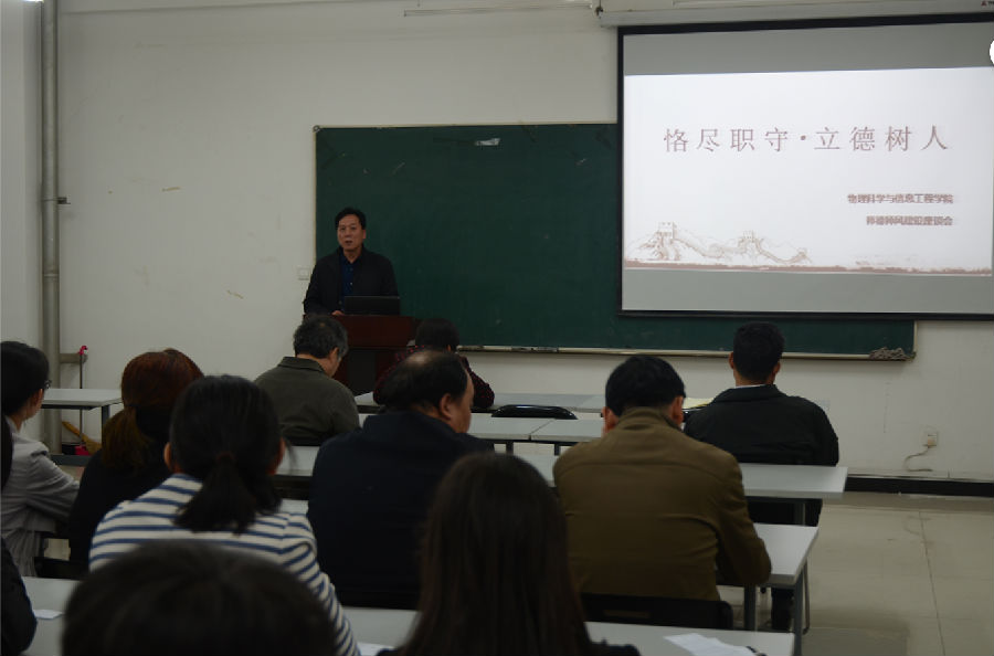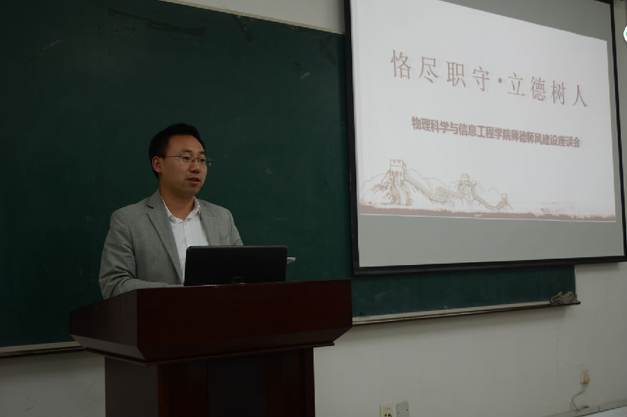 10月12日下午,EBpay App 在理科群2-A302教室召开了以“恪尽职守,立德树人”为主题的师德师风建设报告会。院长张书敏主持报告会,宋俊涛、杨振军、康建波三位教师代表发言,全院教职员工参加了报告会。