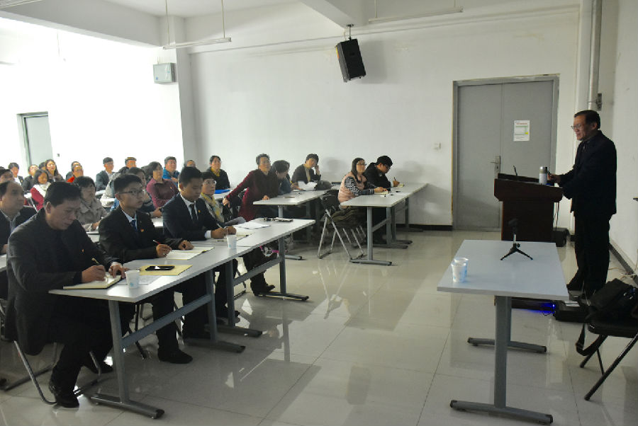 11月3日下午,EBpay App 邀请朱月龙教授在理科群2-A302为全体师生党员作了题为“扬帆再起航,书写新篇章——学习党的十九大报告,领会十九大精神”的专题报告会。EBpay下载 教师和学生党员80余人听取了报告,EBpay下载 党委书记杨连祥主持报告会。