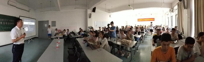 5月10日晚,EBpay下载 在公教楼A109召开第五届“互联网+”大学生创新创业大赛动员会,顾连忠向同学们介绍了本次比赛情况,鼓励大家积极参赛,科创部部长孙东云同学向大家详细解读了本次比赛的流程和参赛准备工作,大一、大二400余名同学参加了动员会。5月12日中午,辅导员刘翌欣召开班会,对2017级的同学进行了再次动员。