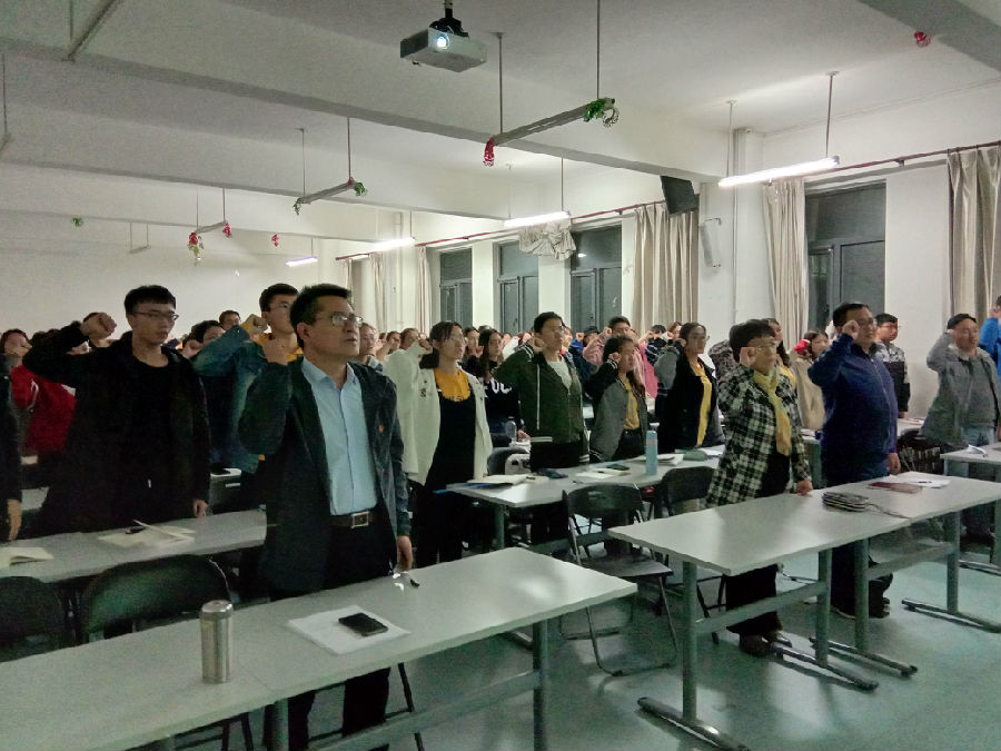 为深入学习贯彻习近平新时代中国特色社会主义思想和党的十九大精神,深入推进“不忘初心·牢记使命”学习教育,EBpay下载 于2019年10月21日晚组织师生收看了中央电视台《榜样4》专题节目,重温入党誓词。