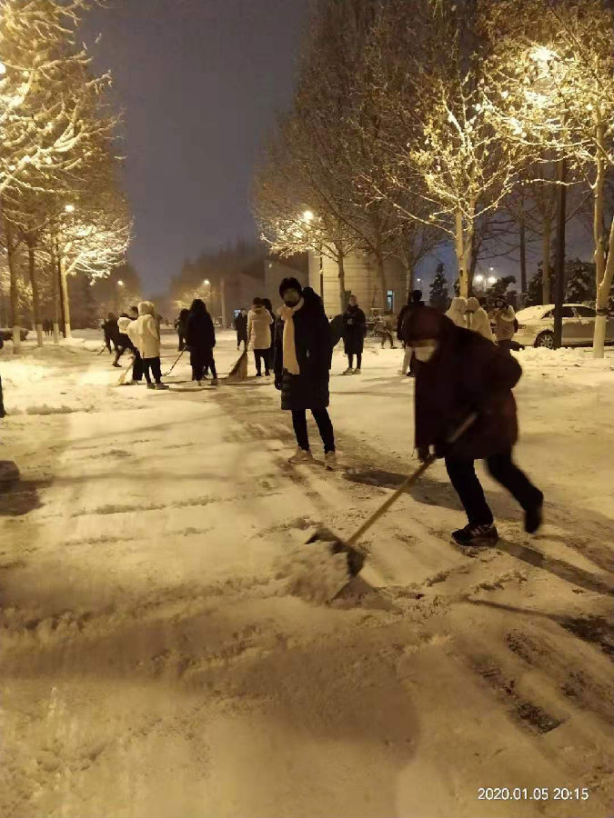 2020年1月5日,天降瑞雪,整个校园洋溢在一片欢乐的海洋,同时也为广大师生的出行带来了不便。