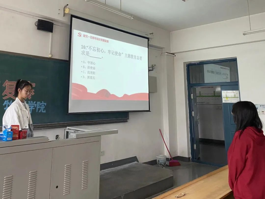 复赛于4月24日下午14:00在公教楼D309室以限时答题形式进行,即选手需在两分钟内对PPT上随机放映的题目进行回答。选手们争分夺秒,凭借对党史知识的熟练掌握和强大的心理素质与灵活的应变能力,均取得了优异的成绩。