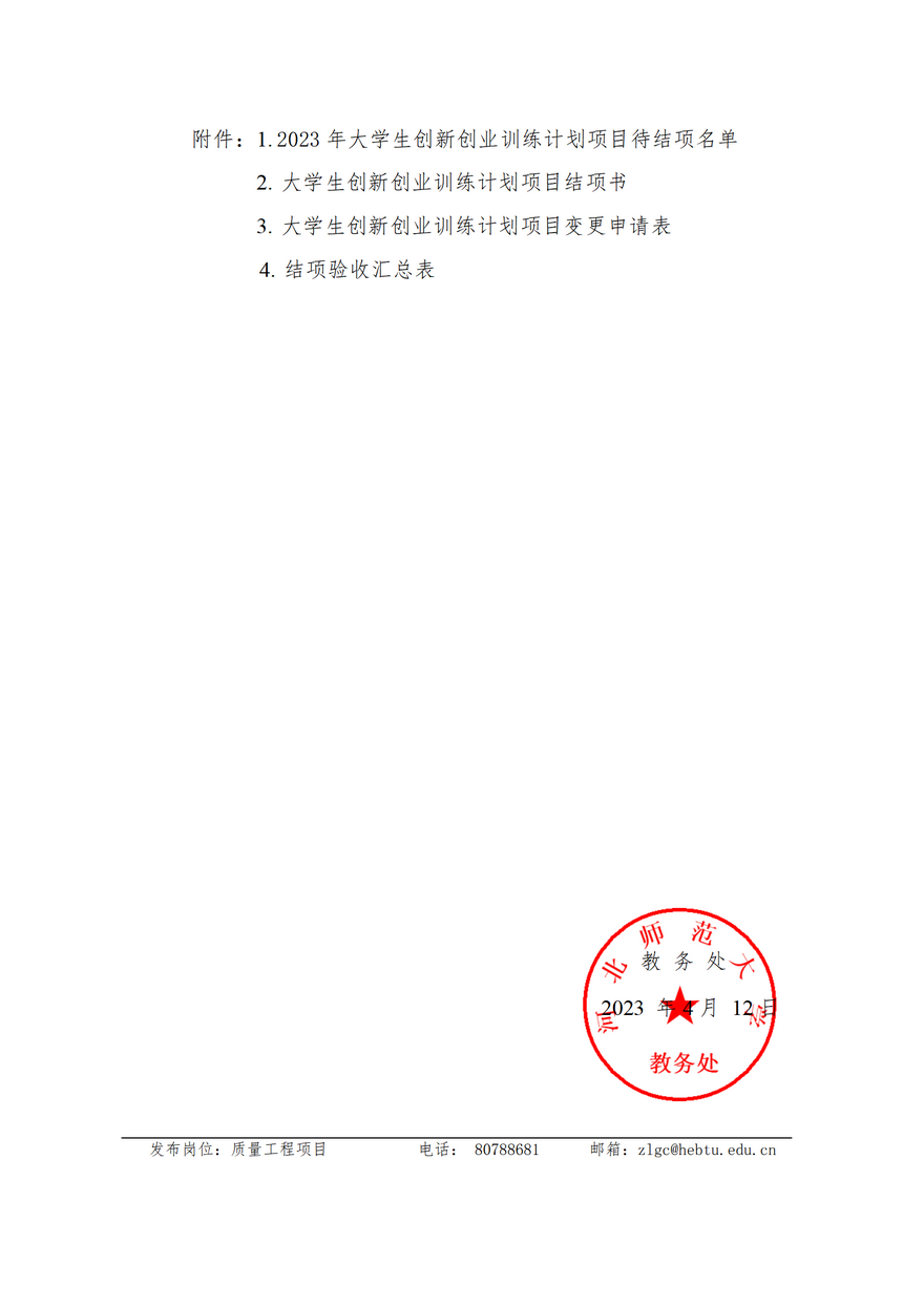 关于开展2023年大学生创新创业训练计划项目结项验收工作的通知