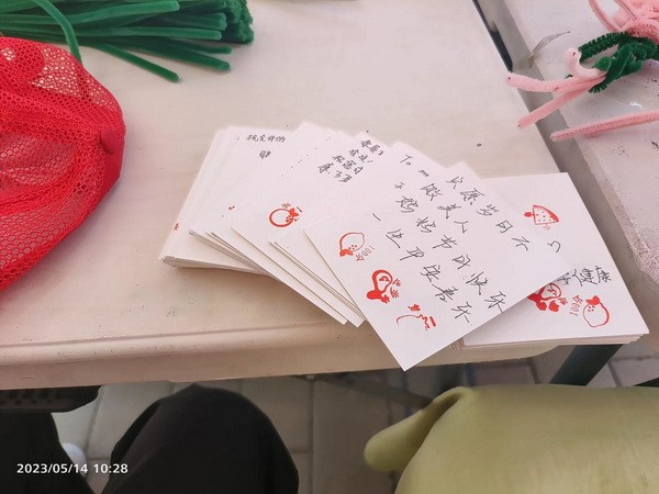 活动现场气氛热烈,随着活动的开展,越来越多的同学被吸引到活动中。同学们用灵巧的双手和满满的心意制作节日礼物,表达着他们对母亲的祝福,通过制作手工花束、心意贺卡、编写短信祝福等实际行动表达对亲人及长辈浓浓的爱意。一支支精美的花束、一张张温馨浪漫的贺卡、一条条满载爱意的信息被汇集起来送往亲爱的长辈手中。