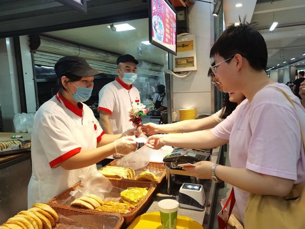 活动后期EBpay下载 青年志愿者协会成员对收集来的花束和明信片进行筛选,随后赠予老师、食堂阿姨及宿管阿姨,并代表EBpay下载 学子向她们表达节日的祝福。