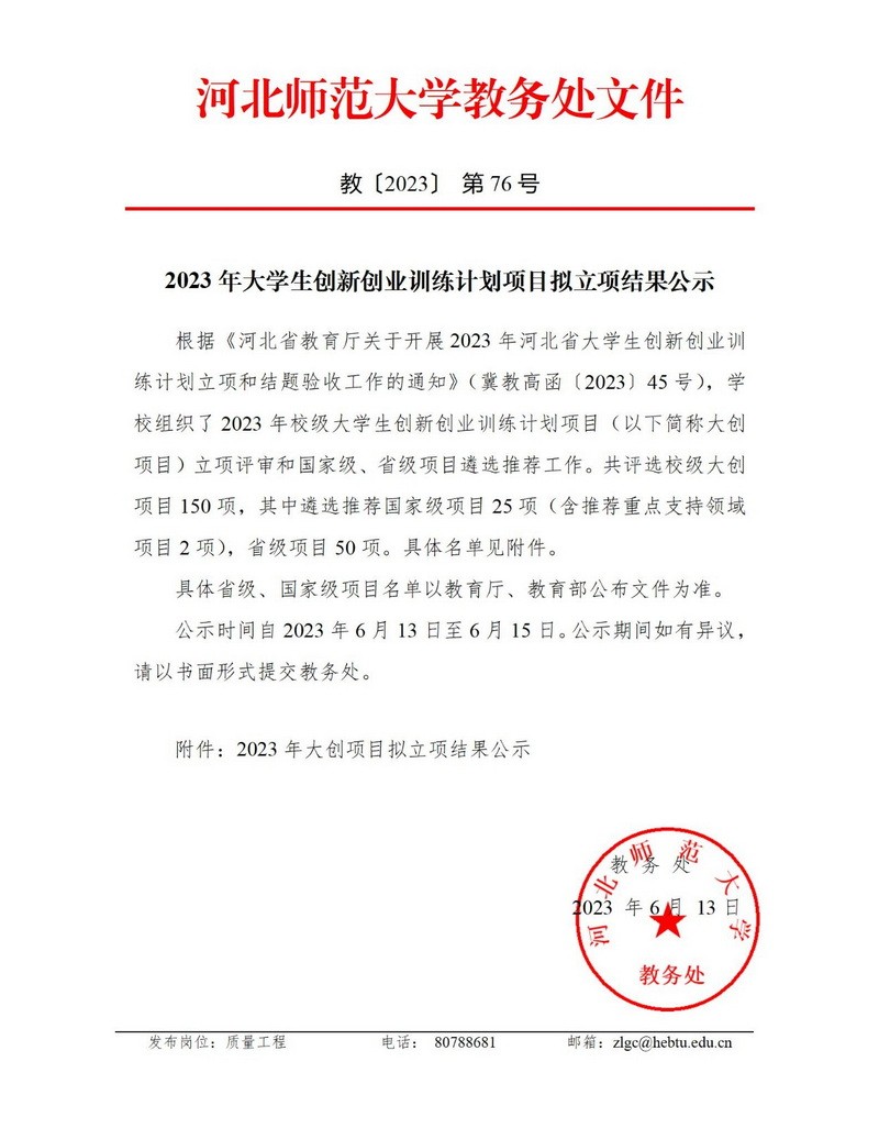 2023年大学生创新创业训练计划项目拟立项结果公示