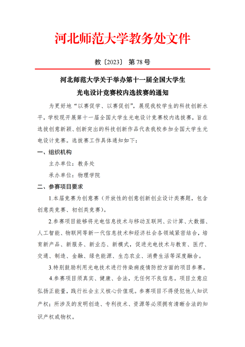 河北师范大学关于举办第十一届全国大学光电设计竞赛校选拔赛的通知