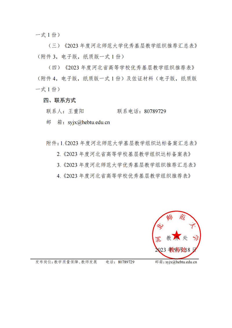 附件1:《2023年度河北师范大学基层教学组织达标备案汇总表》.xlsx