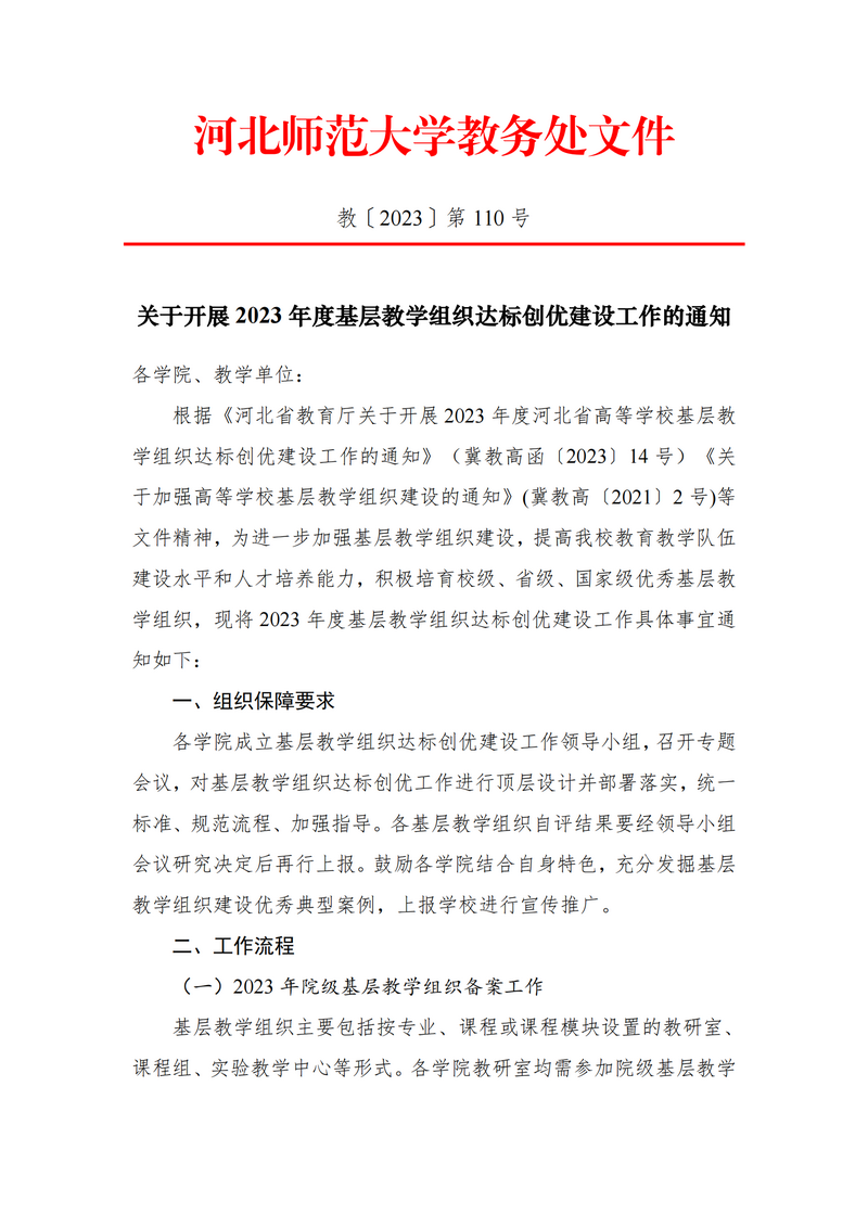河北省教育厅关于开展2023年度河北省高等学校基层教学组织达标创优建设工作的通知 冀教高函2023-14号.pdf