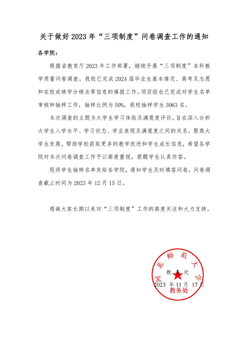 关于做好2023年“三项制度”问卷调查工作的通知