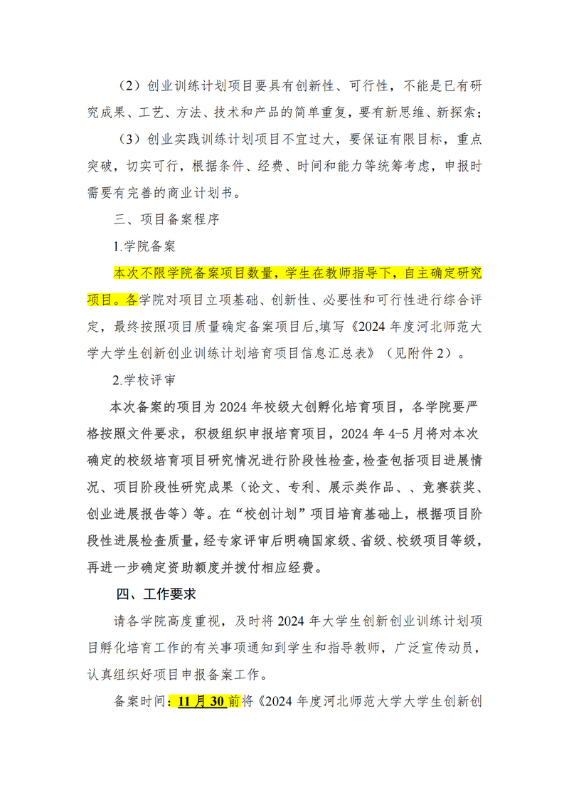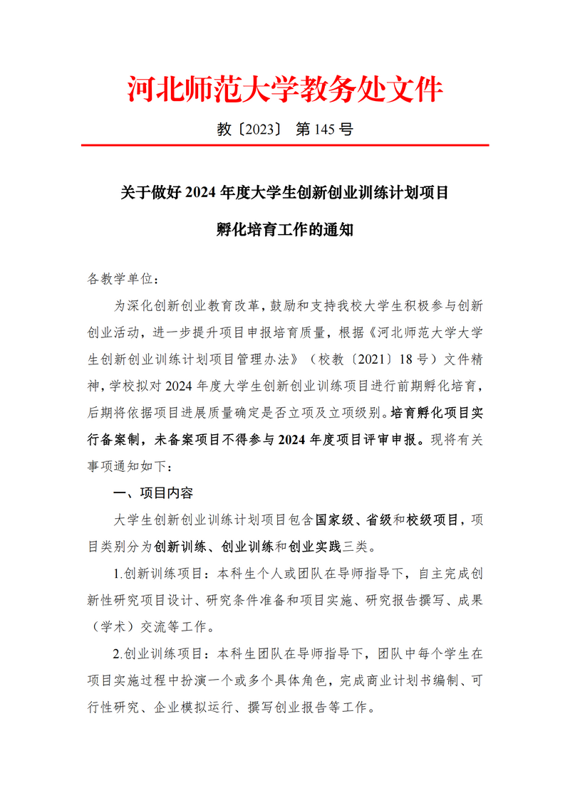 关于做好2024年大学生创新创业训练计划项目孵化培育工作的通知
