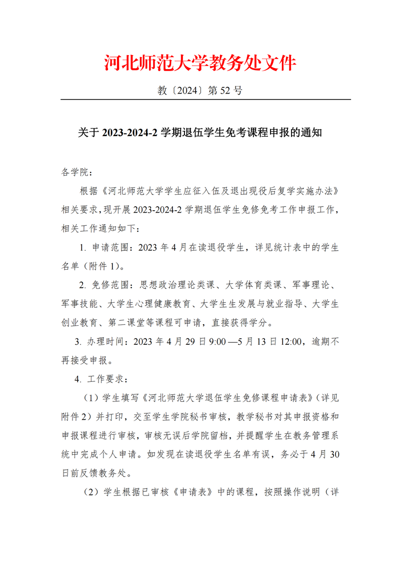 关于2023-2024-2学期退伍学生免考课程申报的通知