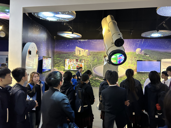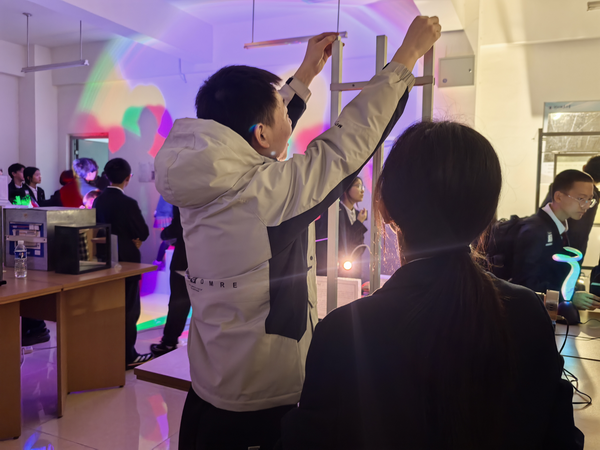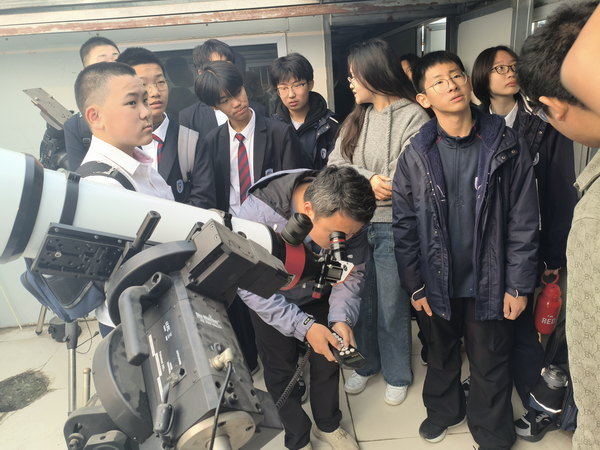 开幕式动员会上,副院长宋俊涛介绍了EBpay下载 实验室开放日的工作部署以及活动对扩大我校物理学科社会影响力的重要意义,副书记张弘强调实验室开放日不仅能够激发中学生学习物理的兴趣,同时可以提升学生志愿者的专业能力和综合素质,要求所有工作人员和志愿者以饱满的热情投入到开放日活动中,服务好研学的中学生。11月9日,北京外国语大学附属石家庄外国语学校初二年级330余名学生进校研学,有序参观了物理实验中心的天文实验室、物理演示实验室、博物馆、图书馆等。中学生在许多有趣的物理现象前驻步、体验,并在志愿者的精彩讲解下引发进一步思考和提问。