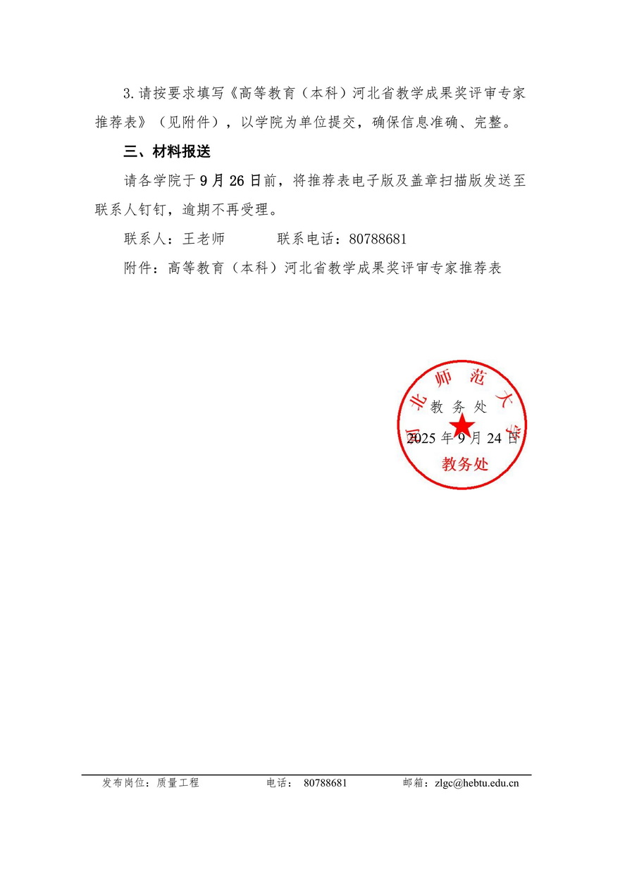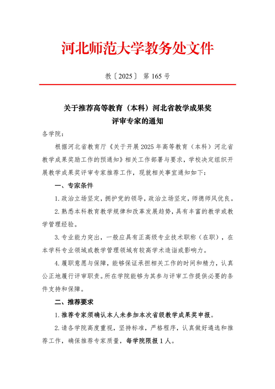 关于推荐高等教育(本科)河北省教学成果奖评审专家的通知